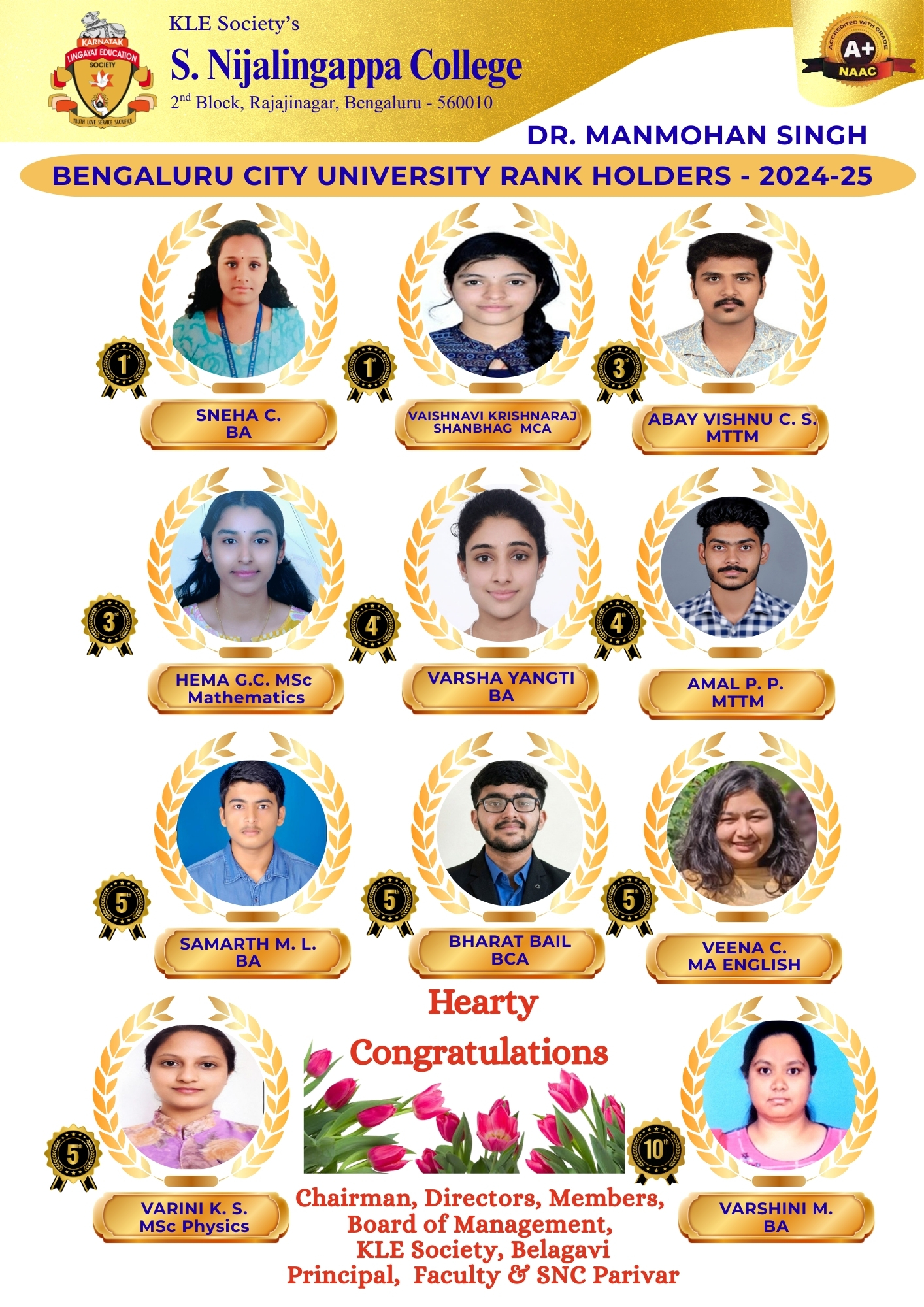 K.L.E. Society’s S. Nijalingappa College, established in the year 1963, is one of the premier institutions of K.L.E Society. It made a humble beginning in a rented building on Mahatma Gandhi Road, near Mayo Hall, as a Science College. It was shifted to the present premises in 1966. The founder Principal Dr.V.G. Nelivigi laid a foundation for the college and was responsible for the development of the college, by its inclusion under 2(f) and 12(B) of UGC. The college is permanently affiliated with Bengaluru City University during 2021-22.